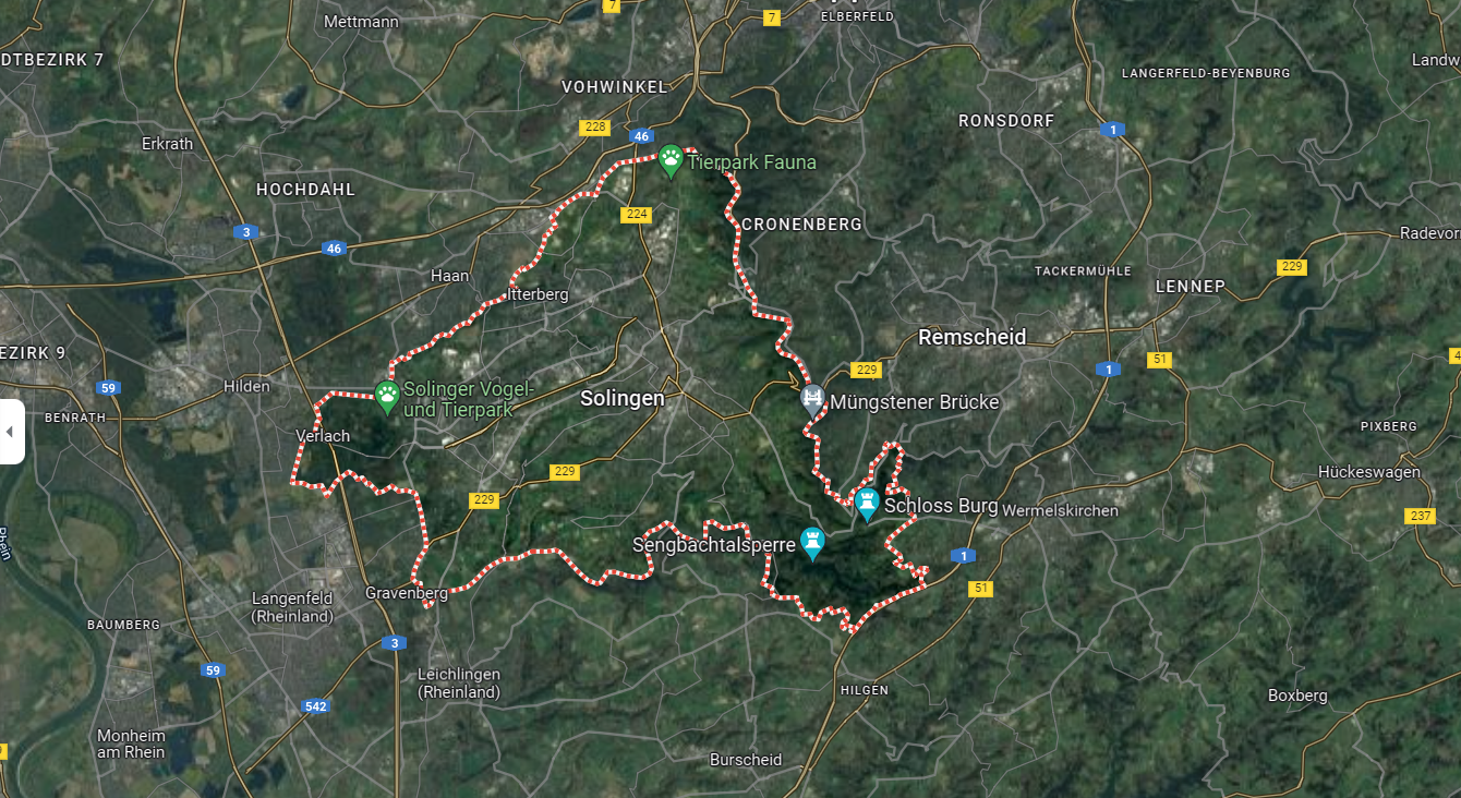 Solingen liegt im Zentrum des bergischen Landes angrenzend an die Städte Wuppertal und Remscheid. Die Metropolen Düsseldorf und Köln sind gut zu erreichen. Solingen zählt zu den ältesten Industrie- und Gewerbestädten Deutschlands. Charakteristisch ist das Nebeneinander von Wohnhäusern und Arbeitsstätten. Kleine und mittlere Betriebe geben in der Wirtschaft bis heute den Ton an. Obwohl Solingen zu den ältesten Industriestädten Deutschlands zählt, haften der Großstadt nicht die negativen Eigenscaften eines Industriestandortes an. Relikte der bemerkenswerten Geschichte gibt es überall, doch ist die Stadt vor allem grün. Sie ist eingebettet in eine reizvolle und an vielen Orten naturgeschützte Landschaft mit den bewaldeten Wupperbergen im Osten und Süden und der Ohligser Heide im Westen. Und selbst mittendrin ist die Natur niemals weit entfernt.